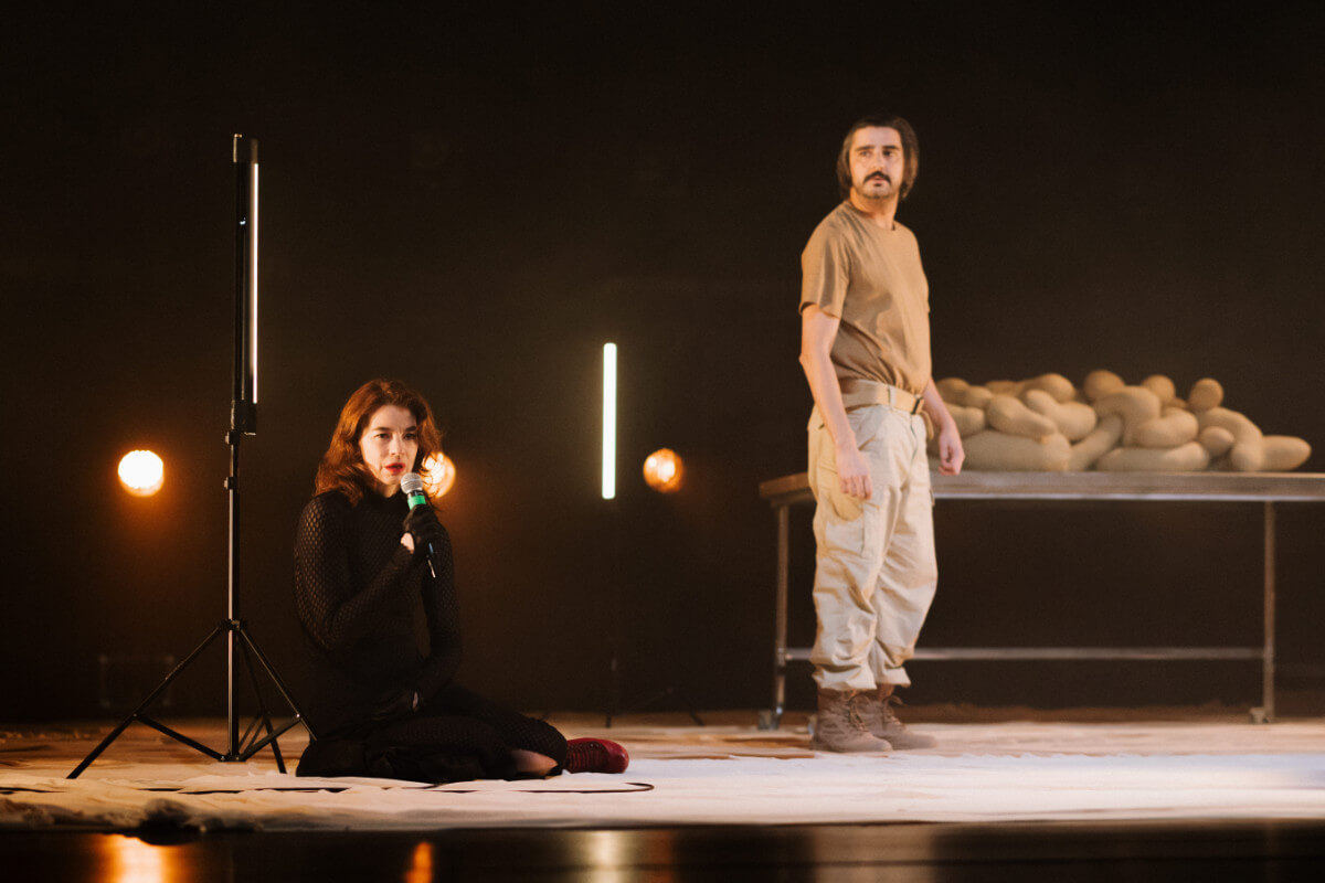 La obra propone un diálogo inquietante sobre la creación, el cuerpo y la necesidad de sentido para sostener la existencia.